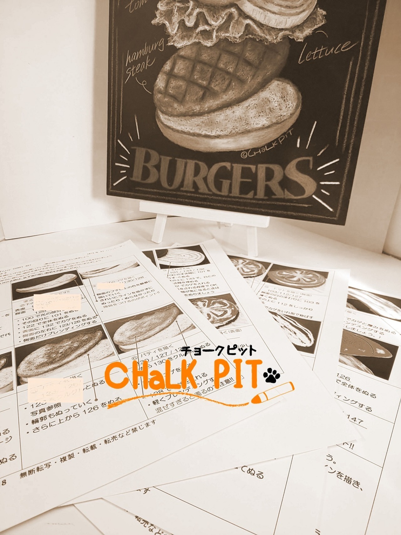 中級者向け【チョークアートキット】 A3・ハンバーガー